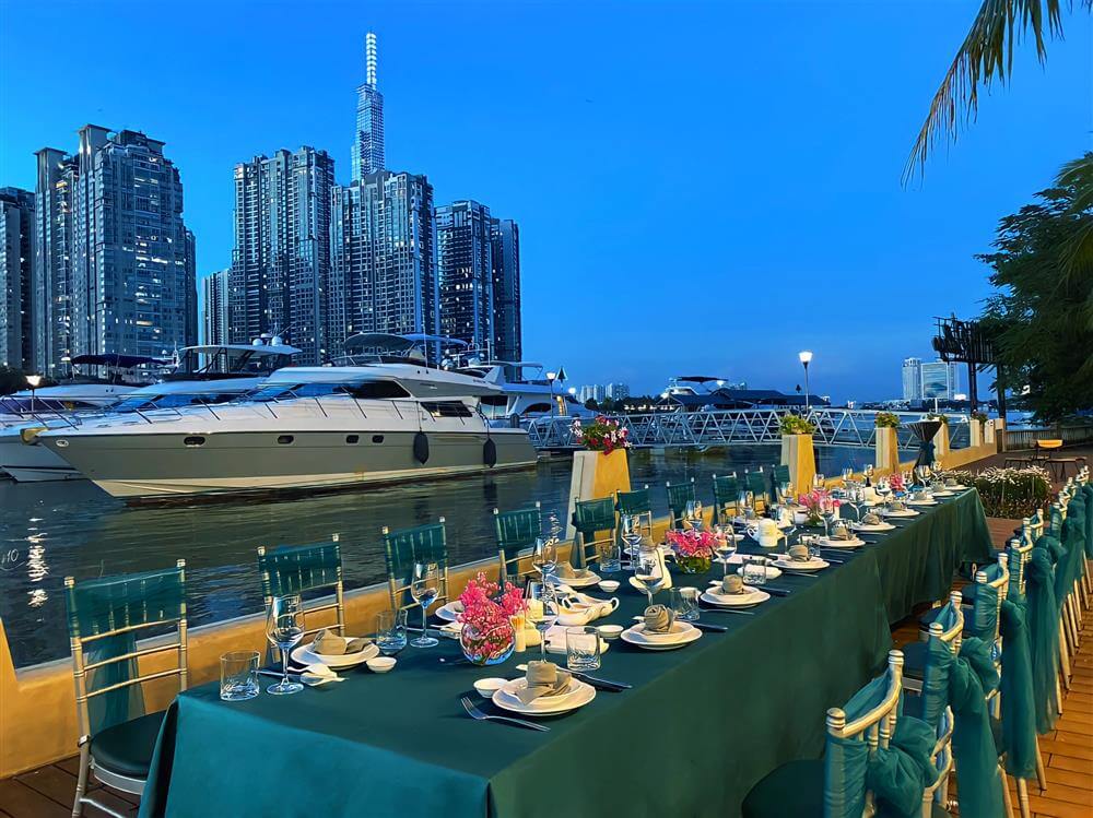The remarkable thing about LA Garden is the yachts. The restaurant owns a marina and many yachts. So, if you want to upgrade your date, there is nothing better than dinner on a private yacht and watching Saigon by night. It is a one-of-a-kind experience you can have in Saigon.