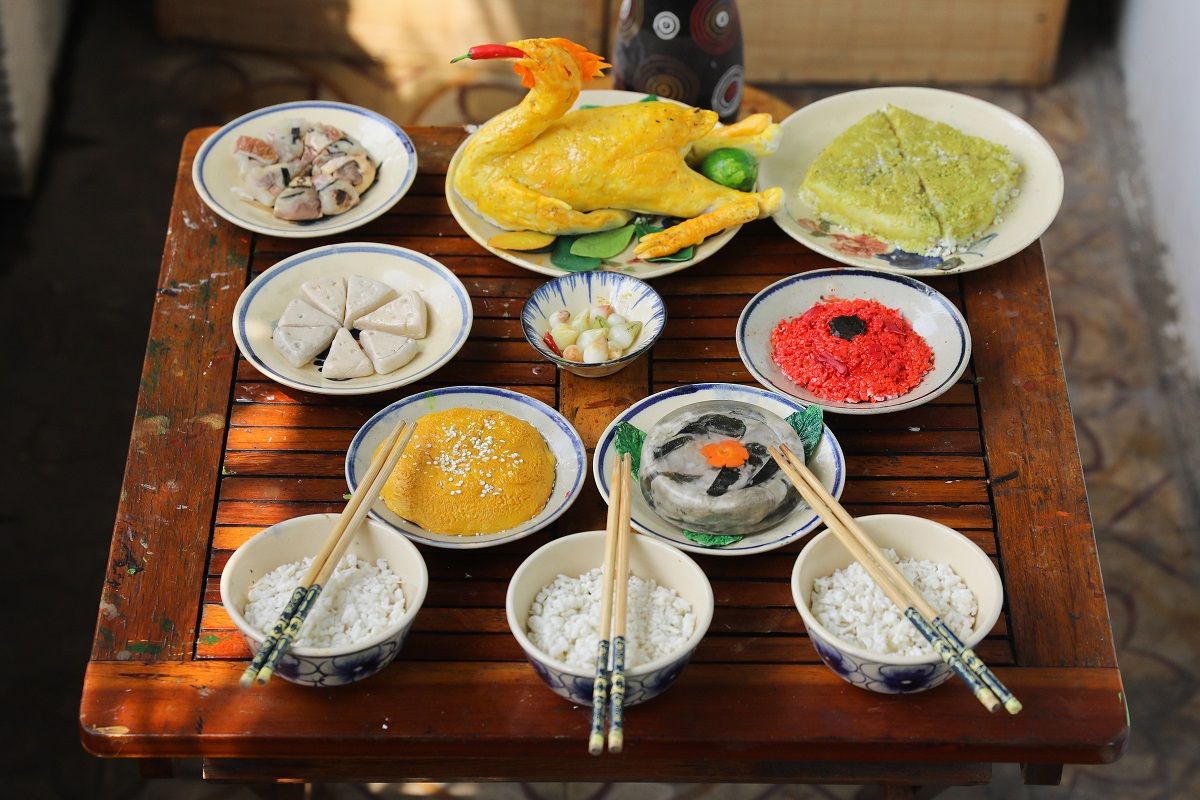 A complete meal there calls for preparing many foods and a sophisticated presentation. Traditionally, the full Northern Tet meal needs eight dishes—four bowls and four plates—representing four pillars, seasons, and directions.