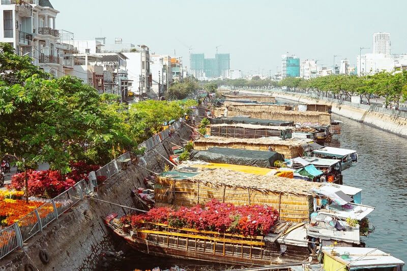 In Saigon, you can go to Ben Binh Dong floating flower market, which takes place on the Tau Hu canal in District 8. There are plenty of beautiful and cheap plants transferred from mainly the Mekong Delta by boats.
