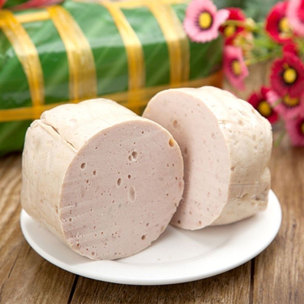 Giò lụa is another traditional Tet menu item often served with starchy foods. The dish has two primary ingredients: pounded lean pork and delectable fish sauce wrapped in a banana leaf into a cylindrical shape and steamed.