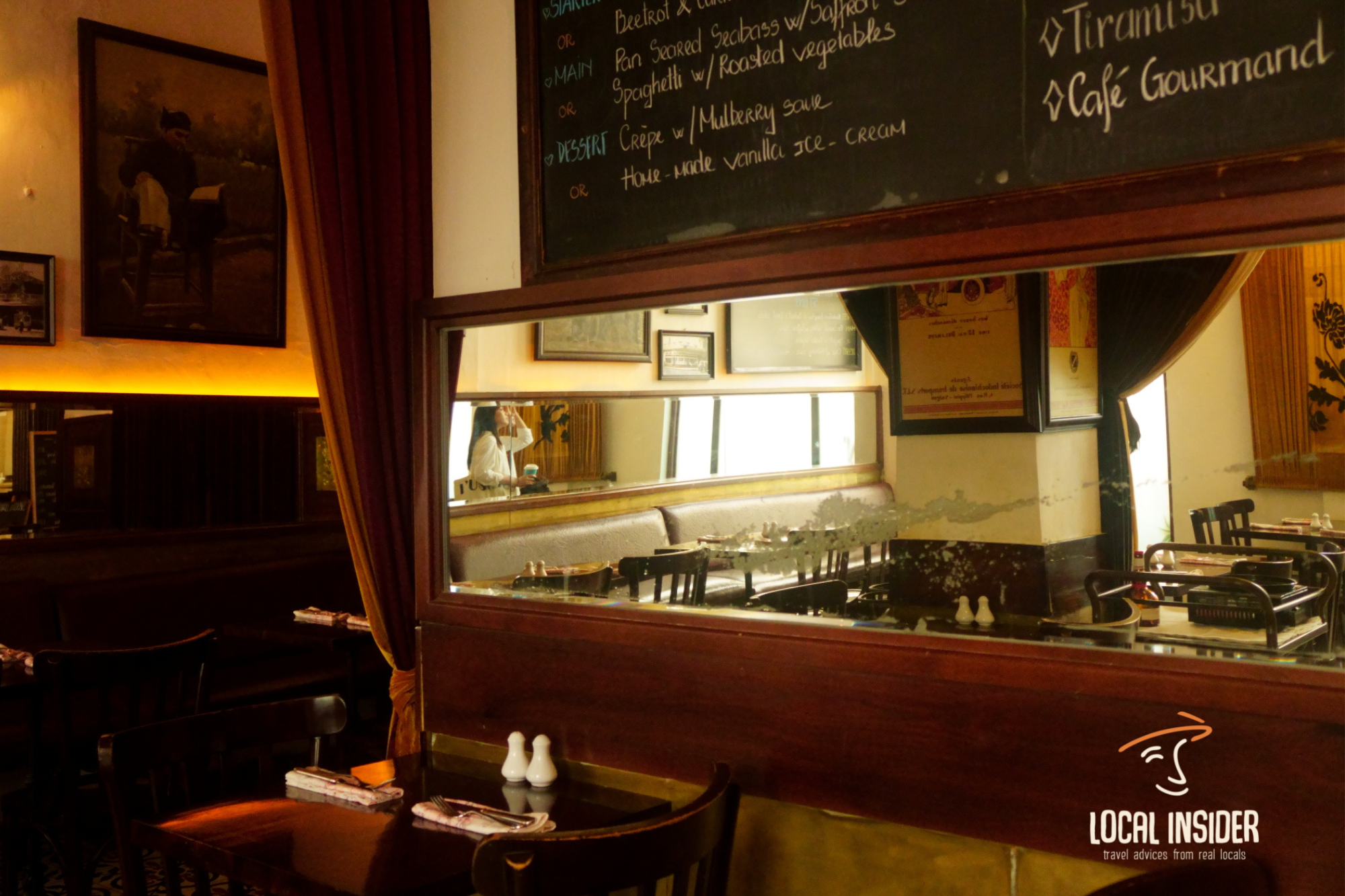 The photography hanging on the walls set the mood to portray its historical background. They dim the lights, set tables out nicely, and select good music—all combine to create comfort, intimacy, and romance for their guests.