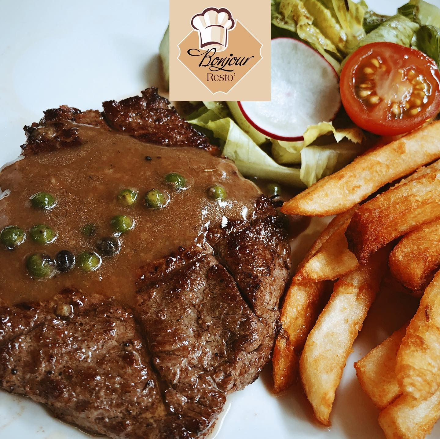 Bonjour Resto' is a restaurant chain specializing in beefsteak dishes and European cuisine such as pasta, salad, dessert, etc. To start a meal, you can choose for yourself the delicious creamy pumpkin soup to go with crispy toast, fresh salad, or garlic bread. Next, the main course menu gives you a lot of choices from Australian beef Steak, roasted duck with orange sauce to salmon fillet with butter sauce.