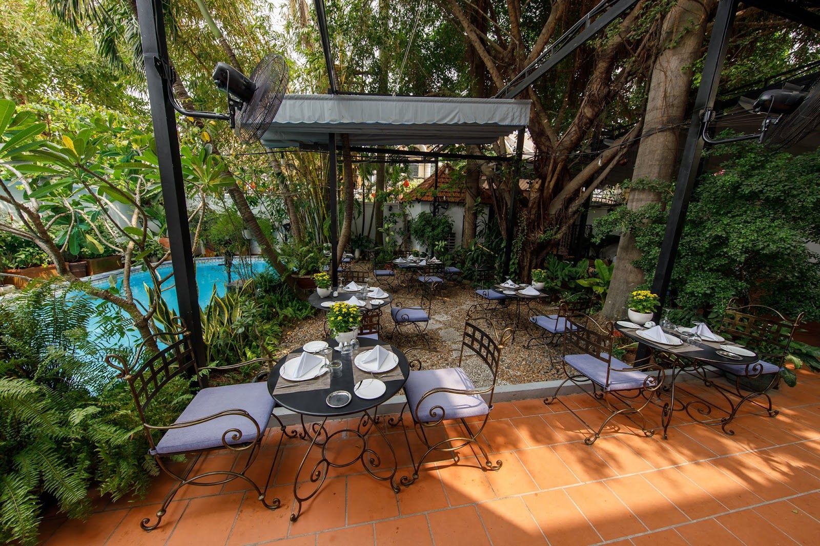 3G Trois Gourmand is located in a French architecture villa. The white tones of the house are interspersed with the fresh greenery and a small swimming pool creating a peaceful and beautiful eatery. The decoration is simple yet very well-presented.