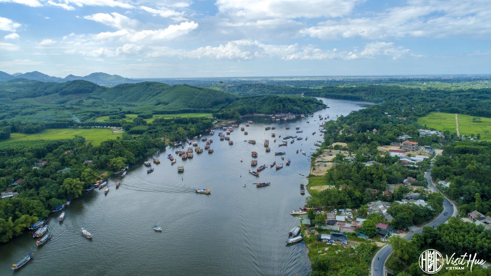 Huong River came from the East of Truong Son Mountain Rage; she travels the distance (approx) 70 km to meet the city of Hue. The river is famous for its beautiful emerald water and the graceful and calm flow across the city. Due to the gentle slope and multiple turns of the river bed, the river has a favorable flow rate through the civilized area, which is why this land can calm the rushing visitors.