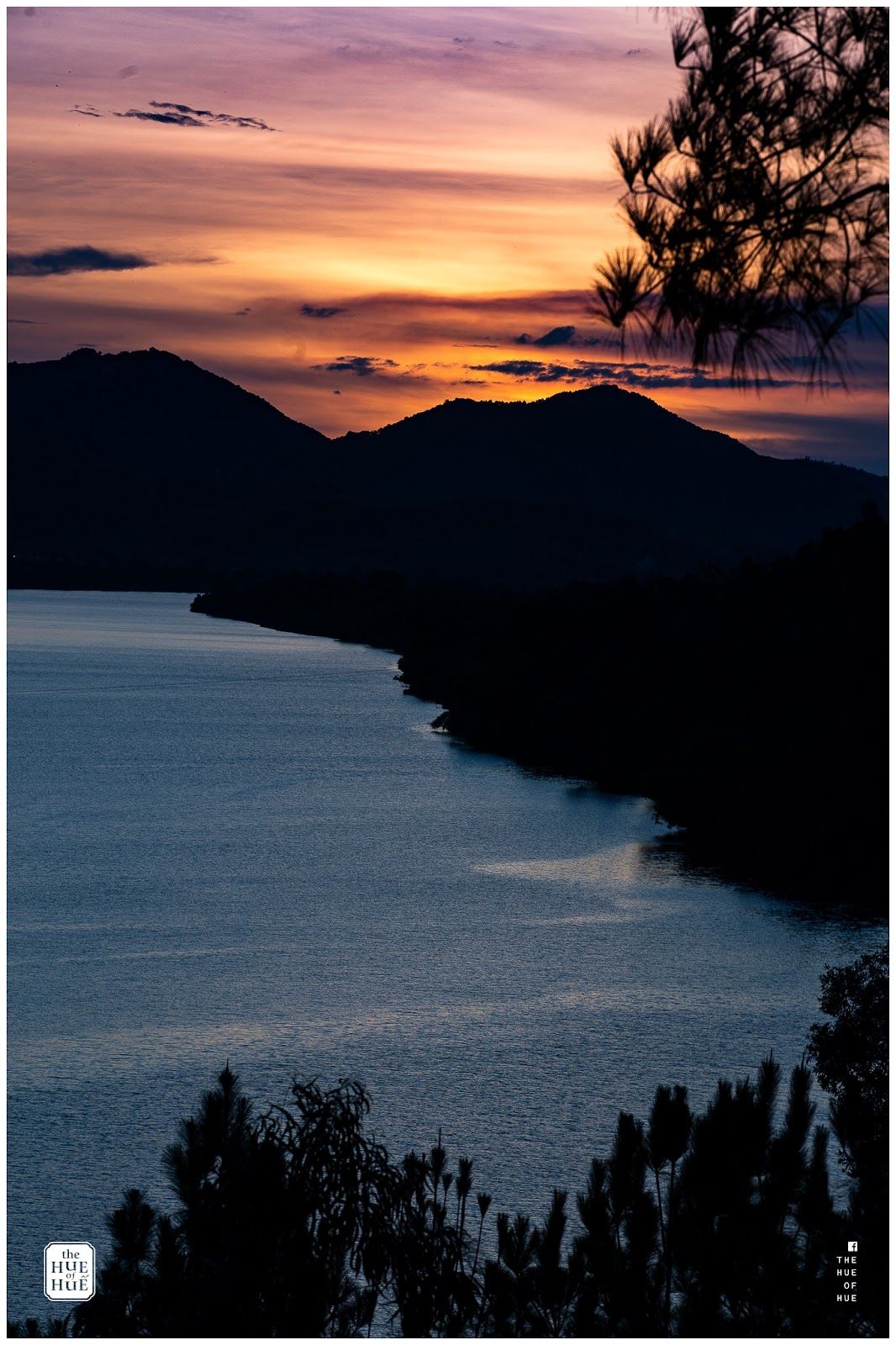 Being a tourist attraction, it's usually busy. However, Linh Mu pagoda is one of the best spots for watching the sunset on the Huong River. Thien Mu is located on the top of the hill, overlooking the spectacular river turn with the mountain backdrop. Once set down, the sun lands on top of the mountain behind the river's bend.